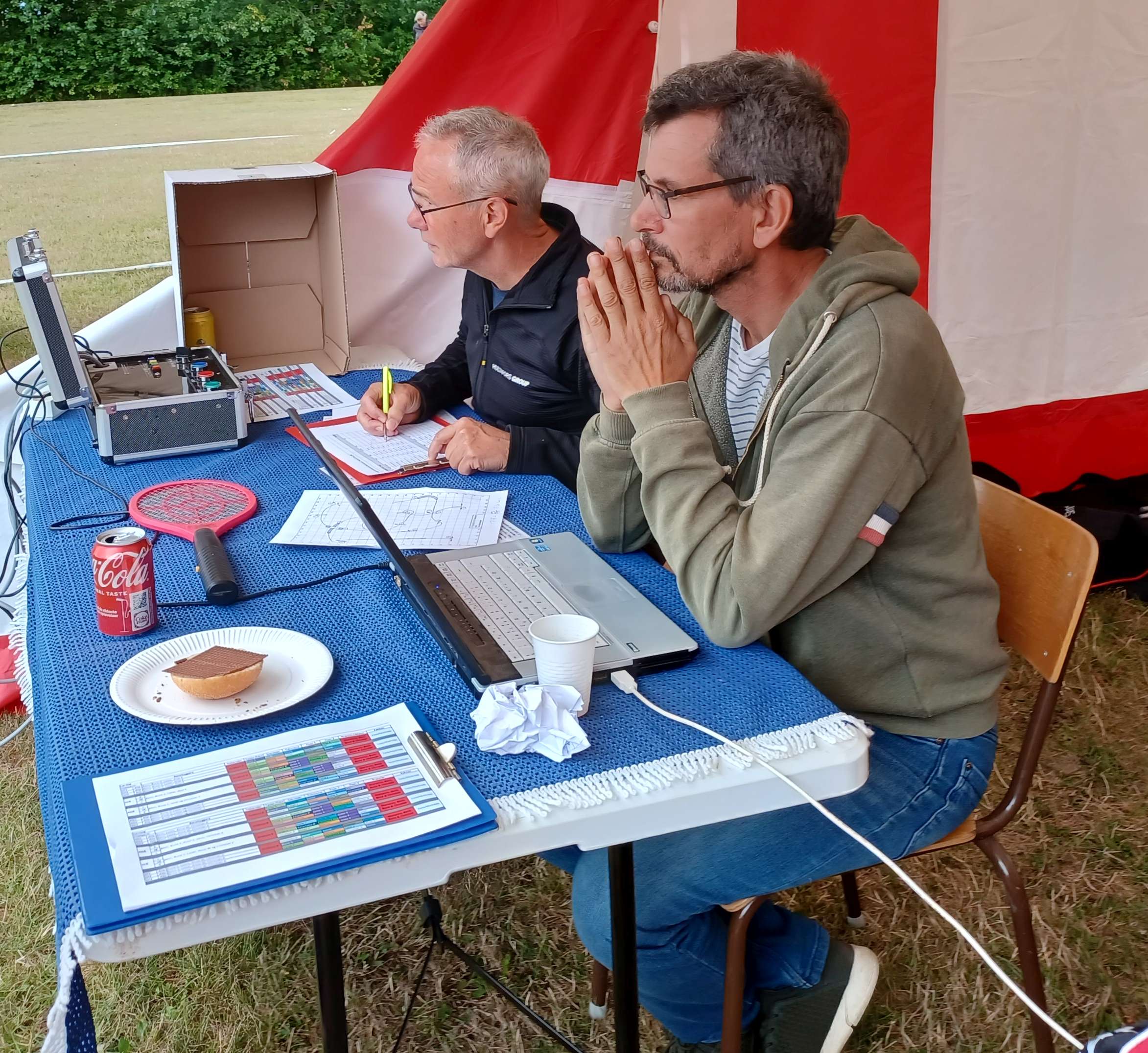 Minna og Thomas havde været så søde at sætte den store pavillon op til os, så vi havde det største sekretariatstelt, vi nogensinde har haft. Rune's lille smarte indtastningssystem fungerede fint, så vi igen i år kunne dele præmier ud så snart klassen var færdig og resultaterne var checket.