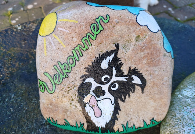 Den her flotte sten stod lige udenfor - så følte vi os rigtig velkomne.